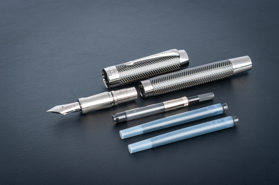 Перьевая ручка Parker Duofold Prestige Centennial Black Chevron CT от официального дилера Parker в Липецке. Вы можете дополнительно заказать гравировку, которая подчеркнет Вашу оригинальность и придаст памятность статусному подарку. Все ручки Паркер поставляются в фирменном футляре.